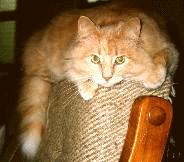 Dayglo is a ginger tabby (born January 2000) and the other is Ebony, Genghis' mum who has been retired from the cattery.